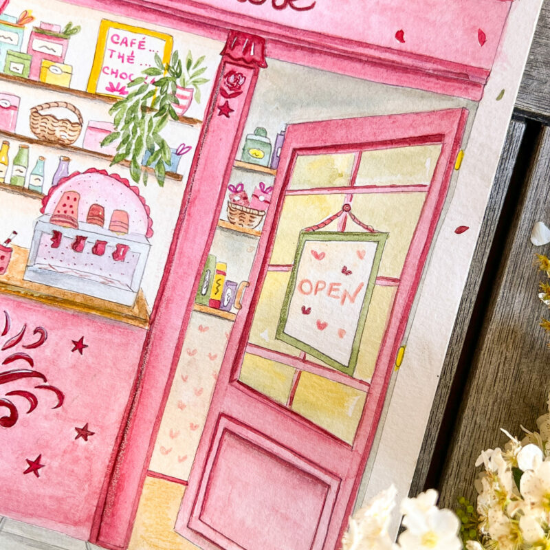 Caché sous des centaines de roses tout juste écloses, la jolie devanture d’un café so cosy ! Une jolie carte pour voir la vie en rose à envoyer à ceux que vous aimez ou à vous offrir en cadeau pour décorer votre chez-vous.