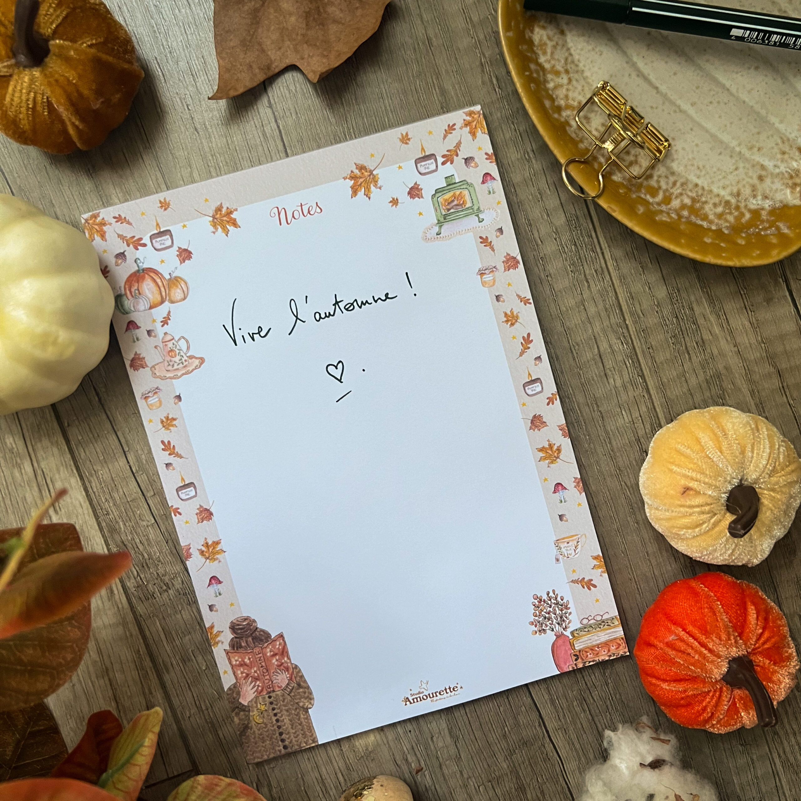 Que vous l’utilisez comme papier à lettres ou comme bloc-notes où noter vos idées et vos pensées, ce bloc-notes trouvera sa place dans votre quotidien que ce soit pour l’automne ou toute l’année si vous êtes fan de cette saison comme moi. Pas de lignes pour vous laisser toute la place dont vous avez besoin et vous permettre aussi d’utiliser ce bloc comme un joli petit carnet de croquis.
